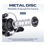 Sistema de freno de alto rendimiento: Su freno de fibra de carbono proporciona una potencia de frenado suave y precisa, ideal para combates prolongados con peces grandes.