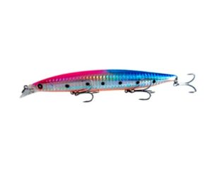 – Peso y Tamaño: Con un peso de 20,5 gramos y una longitud de 110 mm, este señuelo proporciona el equilibrio perfecto entre alcance y control. Su tamaño lo hace ideal para imitar el movimiento de peces pequeños, atrayendo así a los depredadores más exigentes.